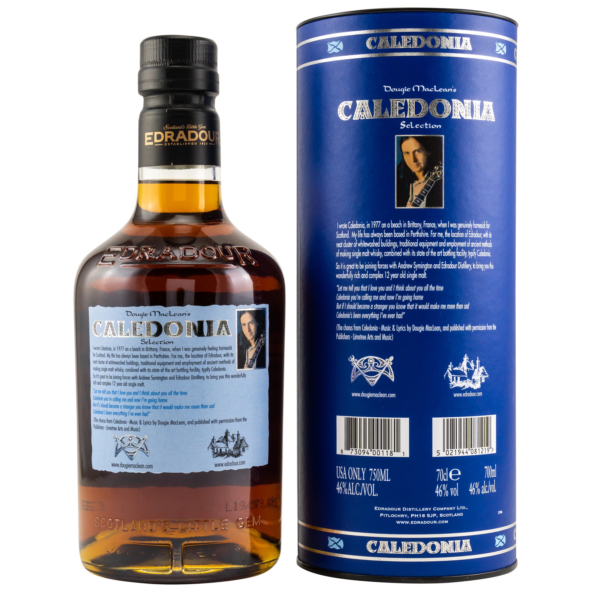 Edradour Caledonia präsentiert markante Sherrynoten, die während seiner 42-monatigen Veredelungsphase aus exklusiven Oloroso-Sherryfässern intensiv entwickelt wurden. Der Whisky, benannt nach dem gleichnamigen Song des renommierten schottischen Musikers Dougie MacLean, wurde in einer kollaborativen Gestaltung von Andrew Symington, dem Eigentümer von Edradour, und Dougie MacLean kreiert.