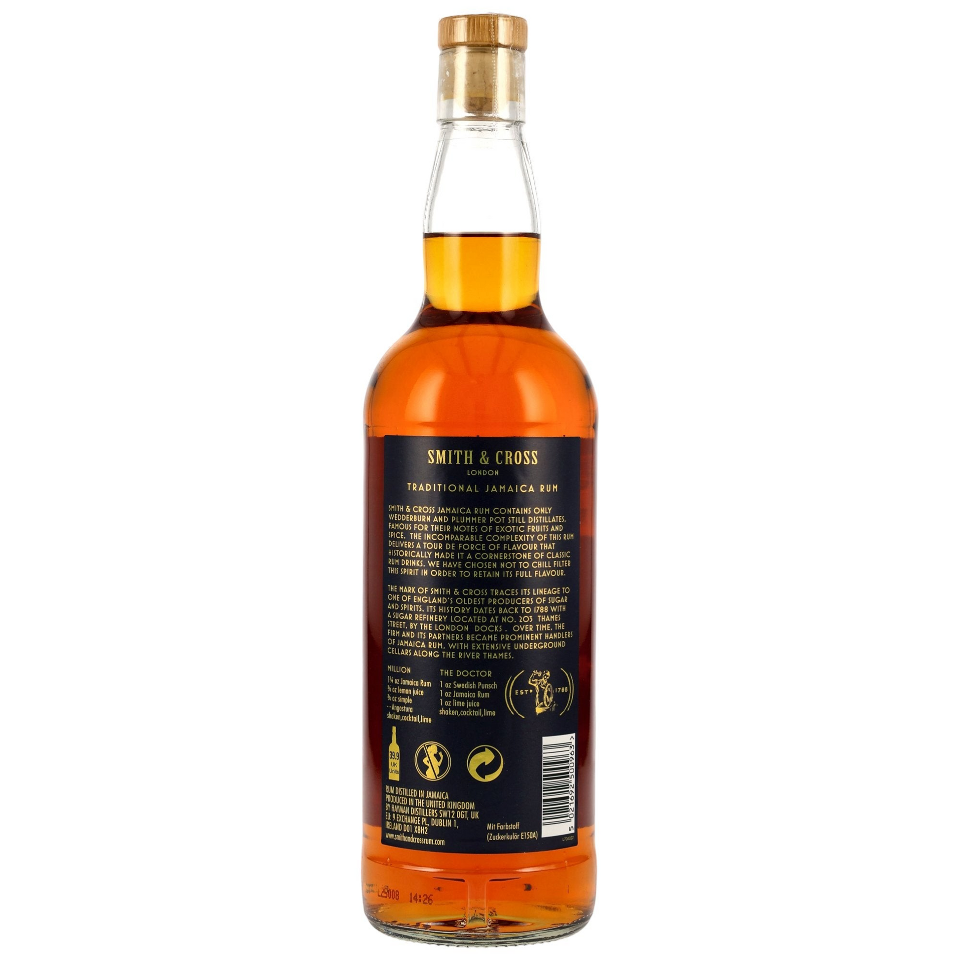 Am Gaumen zeigt sich der Smith & Cross Traditional Jamaican Rum lebendig, vollmundig und rauchig-fruchtig. Fruchtige Ester, begleitet von Tonkabohne, Rohrzucker, Banane und Orangenöl, verbinden sich mit kräftiger Würze und einem Hauch Pfeffer. Die Textur ist ölig, präsent und kraftvoll – eine wahre Geschmacksexplosion für Abenteurer unter den Rum-Genießern.